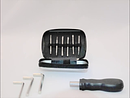 Zestaw narzędzi w metalowym etui zamykanym na zamek. Zestaw składa się z 6 wkrętaków o podwójnym zakończeniu. W ich skład wchodzą: 4 końcówki imbusowe, 4 płaskie śrubokręty (4 mm) + 4 śrubokręty krzyżowe (Phillips, 4 mm) oraz 3 klucze imbusowe i uchwyt wkrętakowy (4 mm).
